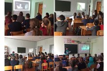 « ДоброГод» проекты кысаларында 1-4 нче сыйныф укучылары «Айболит66», 5-8 нче сыйныф укучылары « В бой идут одни «старики»», 9-11 нче сыйныфлар «А зори здесь тихие» фильмнарын карап узара фикер алыштылар.