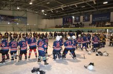Доброй традицией Ледового дворца "Алтын алка" стала проведение показательной игры по хоккею среди воспитанников ДЮСШ и сборной мужской командой Апастово.Второй год проводится такой турнир и если в прошлом году была между командами "Титан" и "Т-34" ,сегодня встречались команды "Барс" и "Т-34".Встреча проводился в целях: