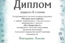 Учащиеся отделения ИЗО участвовали в Республиканском конкурсе детского конкурса рисунков "История моего района" в рамках национального образовательного анимационного проекта "Век Татарстана-3" посвященного 100-летию образования ТАССР. Бикчурина Азалия удостоилась диплома лауреата 2 степени.