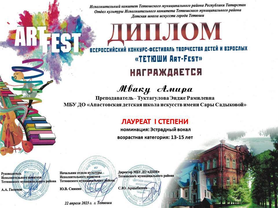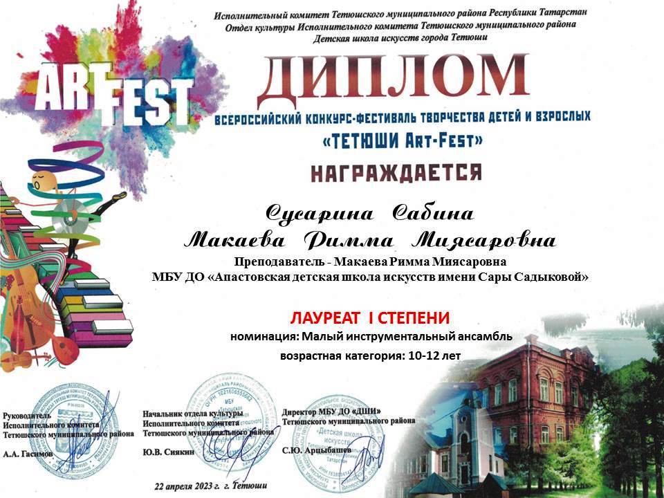 Всероссийский конкурс-фестиваль творчества детей и взрослых "Тетюши ART-Fest". 16.04.2023