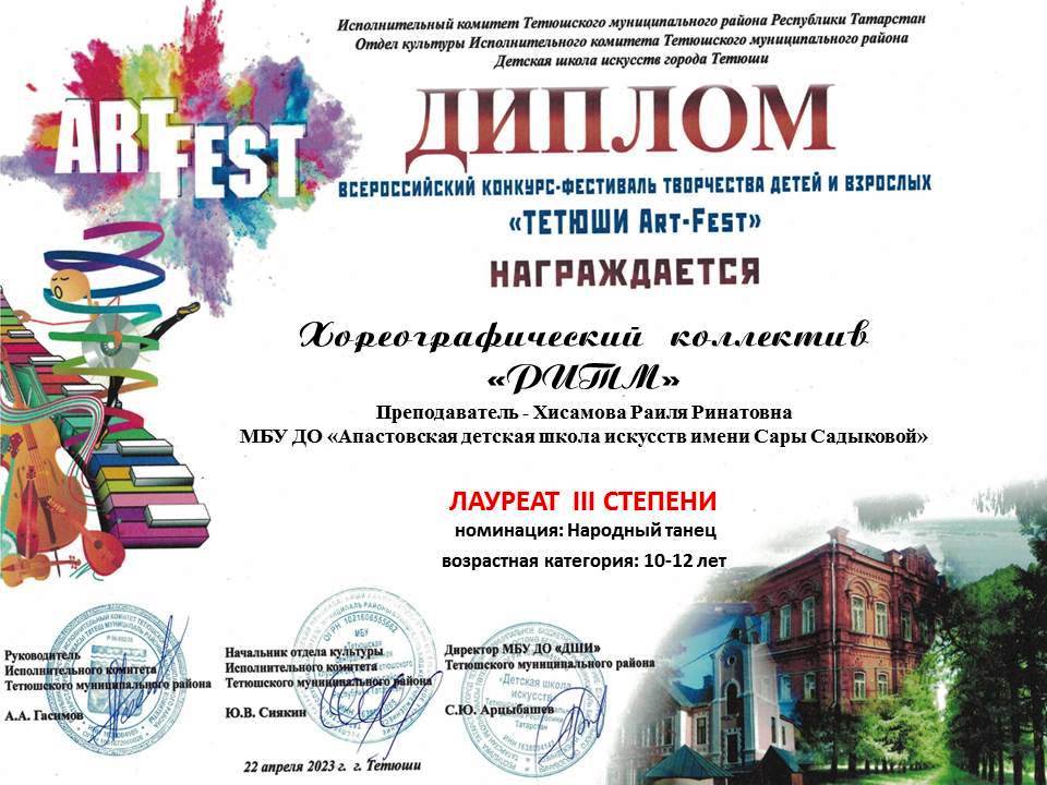 Диплом Ансамбль, Диплом Ахметзянова Азалина, Диплом Мваку Амира, Диплом Хореографический коллектив "Ритм", Диплом Сафиуллина Зиля, Диплом Шагиев Инзиль, Диплом Шарафуллина Алия,