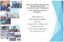 ГАПОУ "Апастовский аграрный колледж" 12 марта 2016 года проводит День открытых дверей. 12.03.2016