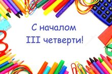 Мы поздравляем всех с началом четвертой четверти! Желаем коллегам - творческих успехов; родителям - терпенья; ученикам - хороших отметок и прочных знаний. -
