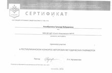 Одним из важных направлений деятельности в сфере дополнительного образования является повышение методического уровня педагогов, внедрение новых технологий. Этому способствует участие педагогов доп.образования в профессиональных и методических конкурсах. Педагог МБУ ДО ЦДТ «Сэлэт» Насибуллина Г.Х. приняла активное участие в конкурсе методических разработок, проводимых ИРО РТ.