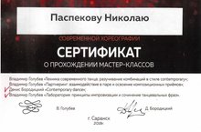 14 октября на сцене Мордовской государственной филармонии– Республиканского дворца культуры при поддержке Союза театральных деятелей Российской Федерации состоялось ключевое событие в мире современной хореографии– Гала-концерт VII Международного фестиваля-конкурса «Новая Лиса 2018». Педагогу МБУ ДО ЦДТ "Сэлэт" Паспекову Н.В. был вручен сертификат о прохождении мастер-классов.