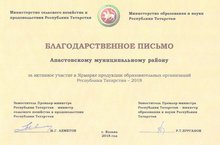 13 октября в Агропромышленном парке «Казань» (ул.Аграрная, д.2) Министерство образования и науки Республики Татарстан совместно с Министерством сельского хозяйства и продовольствия Республики Татарстан провели традиционную Республиканскую ярмарку сельскохозяйственной продукции и изделий народно-художественных промыслов 2018 года с участием муниципальных районов и образовательных организаций республики. Традиционно в рамках мероприятия проведен смотр-конкурс ярмарочных застроек. Работники МБУ ДО ЦДТ "Сэлэт" приняли активное участие в оформлении экспозиционной площадки Апастовского муниципального района и были награждены Благодарственным письмом Министерства образования и науки Республики Татарстан совместно с Министерством сельского хозяйства и продовольствия Республики Татарстан «За лучшее оформление ярмарочного места».