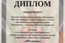 10 февраля 2018 года детский театральный коллектив "Мушкетёры" центра детского творчества "Сэлэт" Апастовского МР РТ принял участие в республиканском смотр-конкурсе детско-юношеских любительских театральных и кукольных коллективов "Иделкәем", который прошел в Кайбицком районе РТ.