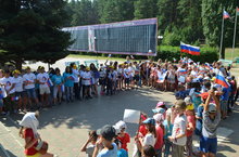 День Российского флага – праздник, который помогает объединить общество на вечных ценностях – патриотизме, государственности. К этому знаменательному событию в Апастовском районе на базе детского оздоровительного лагеря «Свияга +» был прослушан «Гимн Российской Федерации», проведена акция «Российский триколор», в которой ребята детских общественных организаций и движений (РДШ, СНТ, ДРД, Волонтёры) повязывали ленточки на запястья участников мероприятия. А так же был проведён массовый флешмоб «Вперёд, Россия!». Особенно трогательным моментом на данном мероприятии звучали из детских уст слова известной песни «С чего начинается Родина…». Вожатыми была проведена игра «Белый, синий, красный».Среди детей провели опрос на знание значения цветов нашего флага, знают ли они историю появления этого государственного символа. Ребята узнали много нового и интересного, а все желающие смогли сфотографироваться с флагом на память.Охват участников мероприятия составил 175 человек.На празднике присутствовали заместитель Руководителя Исполнительного комитета Апастовского МР РТ Мингазиев Р.Х., начальник отдела образования Хайруллина А.Э., директор Центра детского творчества «Сэлэт» Салахова Г.Ф., начальник лагеря «Свияга+» Галеев Д.Н., представители СМИ.