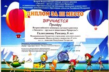 Призёр Всероссийского конкурса "Эколята- друзья и защитники Природы!" 04.10.2022