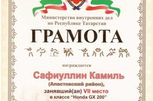 Воспитанник кружка "Картинг" (рук. Сафиуллин А.З.) Сафиуллин Камиль занял 7 место (всего участвовало 185 детей) в классе "Honda GX 200" на соревнованиях по картингу среди детей сотрудников МВД по РТ, посвященных профессиональному празднику сотрудников МВД РФ.