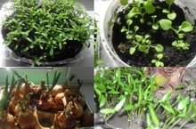 Цветы-бархатцы,сальвия,петуния.Зелень-лук