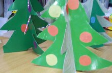 Сегодня ребята сделали новогодние елочки из бумаги.