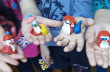 Сегодня ребята из пластилина слепили Деда Мороза.
