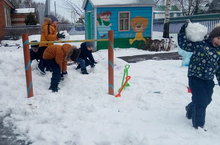 Бакча коллективы балалар белән бергә участокка кар сыннары ясады