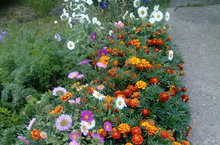 Бакча участогында төрле-төрле чәчәкләр үсә.