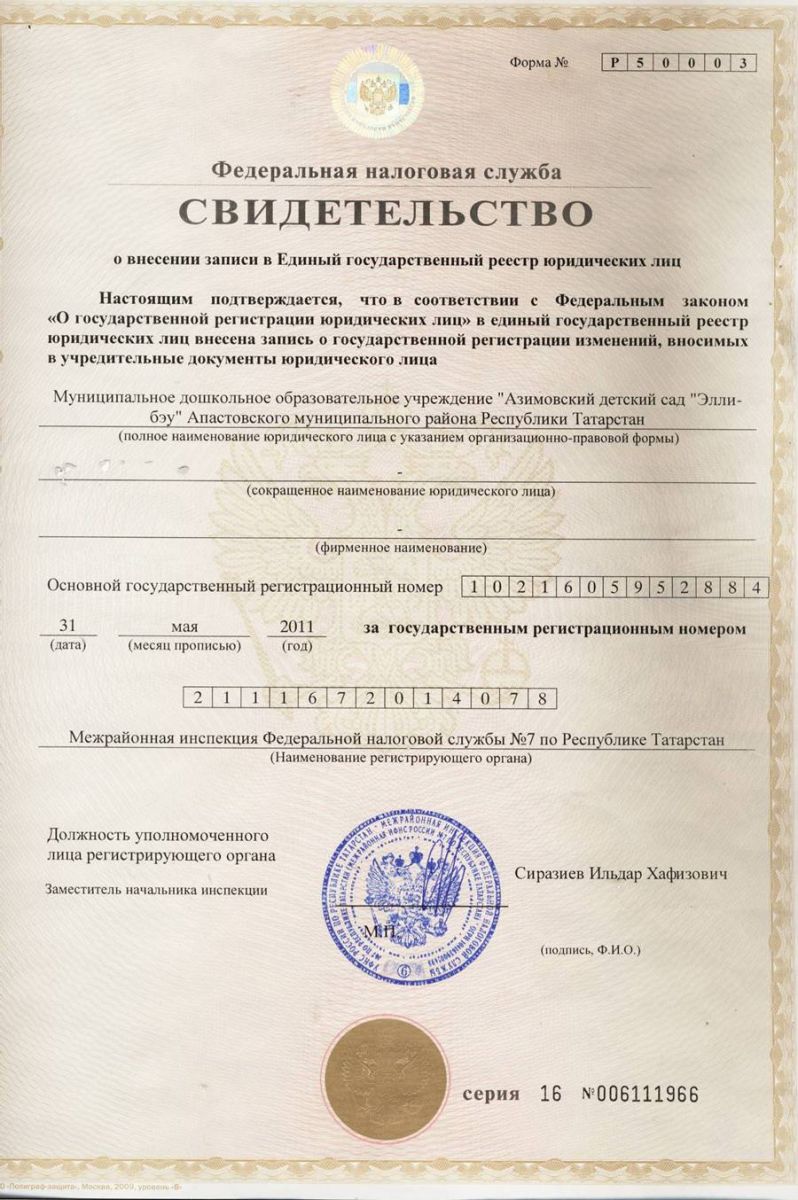 Устав МБДОУ "Азимовский детский сад "Элли-бэу"