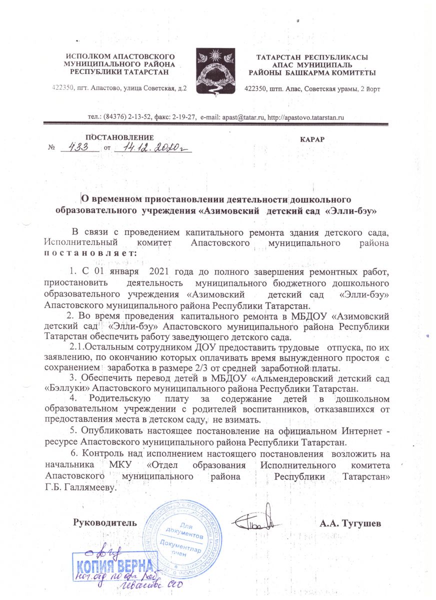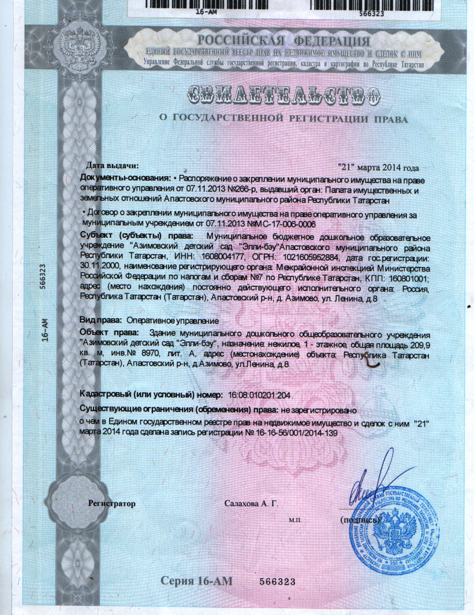 | Адрес: | 422359, Республика Татарстан, Апастовский район, д. Азимово, ул. Ленина, д. 8 |