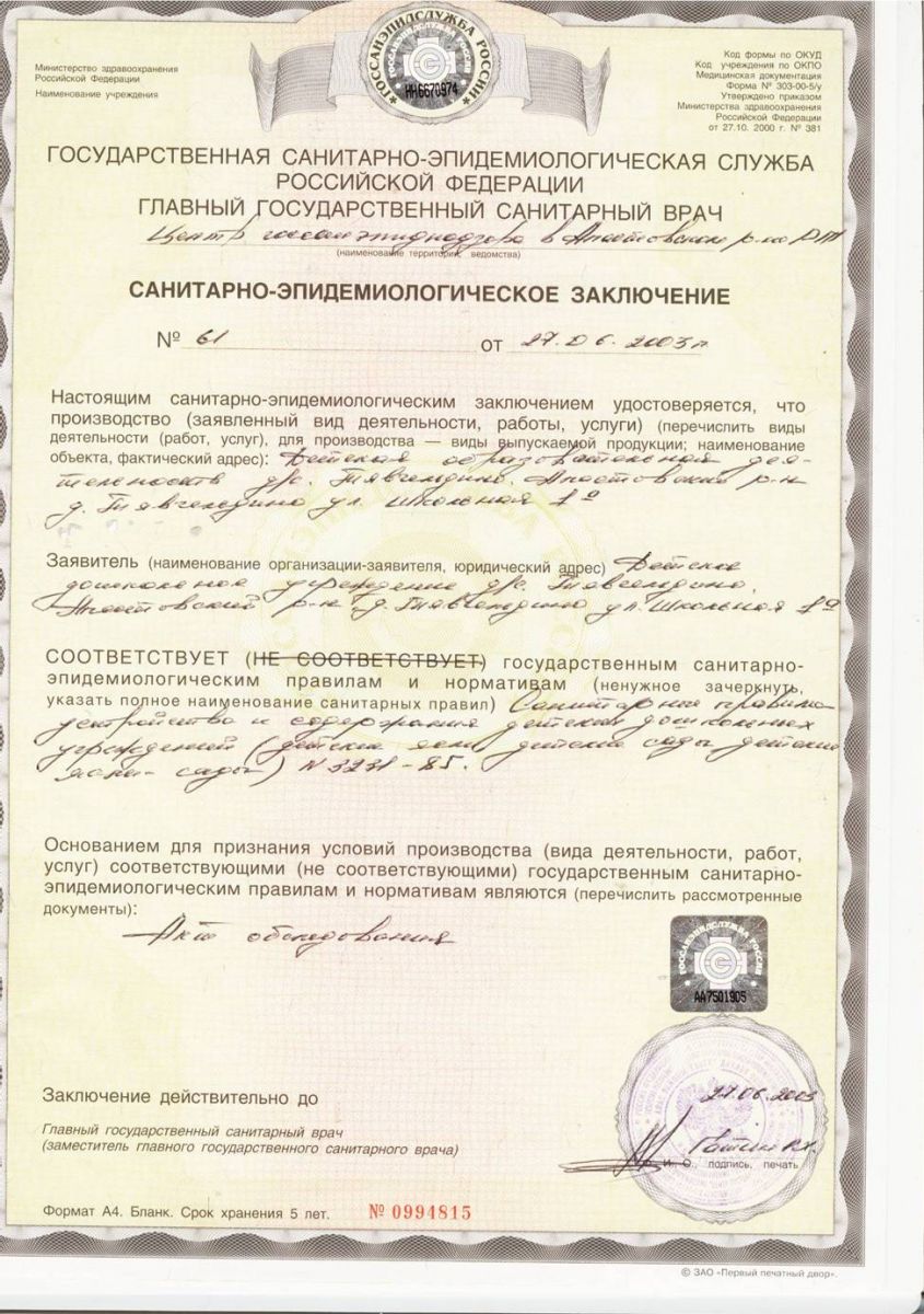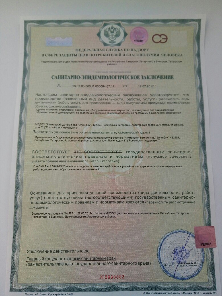 Санитарно-эпидемиологическое /заключение- 12.07.2017