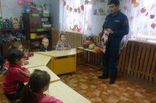 Әлмәндәр янгын сүндерү бүлекчәсеннән Галимов Илнар Илдар улы балаларны янгын куркынычсызлыгы кагыйдәләре белән таныштырып китте.
