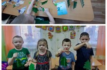 Рәсем ясау шөгелендә балалар узенчәлекле буяу төре белән таныштылар. Табигать материалларын кулланып рәсем ясау. Чыршы күркәләрен буяп. бизәп, үзенчәлекле, матур, кечкенә чыршыкайлар килеп чыкты.