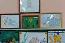 Выставка рисунков в групппах по произведению А.С.Пушкина
