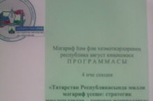 С 13 августа по 15 августа 2015 года проходила Республиканская августовская конференция работников образования в городе Бугульма.Участниками конференции были специалисты, методисты муниципальных органов управления образованием, курирующие вопросы дошкольного образования, заведующие дошкольными образовательными организациями. Среди них была и наша заведующая детским садом Гараева Г.Р. Конференция проходила на темы:"Системообразующие подходы к реализации ФГОС дошкольного образования" и "ТатарстанРеспубликасында милли мэгариф yсеше: стратегик юнэлешлэрдэн- конкрет нэтижэлэргэ"