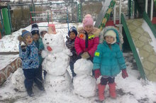 Дети рады Зиме. Собрали немного снега и накатали "Снеговика" 02.12.2016