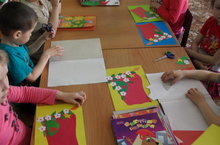 Бүген 9 май бәйрәменә открытка ясадык,шигырьләрне һәм җырларны кабатладык.