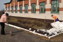 Балалар бакчасы территориясендә җыештыру эшләре бара.