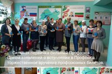 Профсоюз әгъзаларына профсоз билетларын тапшыру.