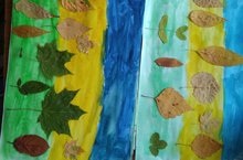 Бүген балалар белән берлектә яфраклардан аппликация ясадык.