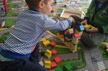 Ирекле эшчәнлек вакытында балалар төрле уеннар уйнарга яраталар.Менә бүген дә бергә кубиклардан замок төзеделәр.
