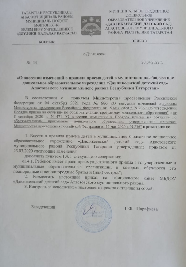 Муниципальное бюджетное дошкольное образовательное учреждение «Давликеевский детский сад» Апастовского муниципального района Республики Татарстан/ Татарстан Республикасы Апас муниципаль районы муниципаль бюджет мәктәпкәчә белем бирү учреждениясе "Дәүләки балалар бакчасы"