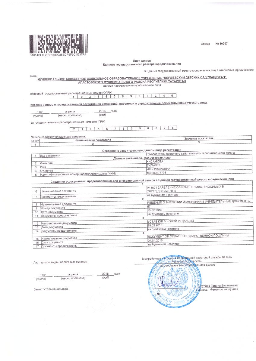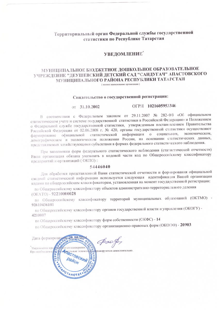| Короткое название: | МБДОУ "Деушевский детский сад "Сандугач" |