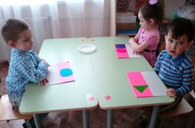 упражнять детей в узнавании и назывании геометрических фигур по двум признакам - цвет и форма;
