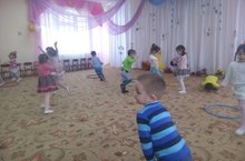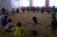 Сегодня дети на занятии физкультуры играли в подвижную игру "Птички в гнездышках".