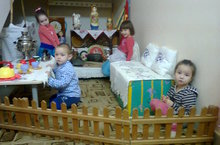 Девочки старшей группы тоже «работают» с утюгом Они гладят платья куклам.