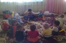 Ясельная группа. Повторяем основные цвета с помощью цветных кеглей.