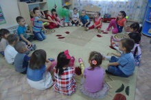 Сегодня на занятии по речевому развитию, дети ясельной группы вместе с воспитателем разыгрывали диалог с курочкой и читали потешки.- Курочка – рябушечка, куда пошла?- На мельницу.- Курочка – рябушечка, зачем пошла?- За водой.- Курочка – рябушечка, кому вода?- Ребяткам.- Курочка – рябушечка, ребята чьи?- Мои! Они пить хотят,На всю улицу кричат! -