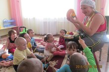 Сегодня в гостях у ребят ясельной группы была бабушка Арина. Она приехала в гости к детям с подарками – овощами, которые выросли у нее на огороде.