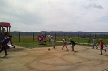 Перед началом игры дети делятся на две команды: игроков и вышибал. Игроки встают в центре площадки, а вышибалы, поделившись на две группы, - с двух сторон от игроков. Вышибалы, перекидываясь мячом, стараются попасть им в игроков - вышибить. Игрок, в которого попал мяч, выбывает из игры. Когда все игроки покинут площадку, команды меняются ролями. Если играют втроем, то тот, кто вышиб игрока, занимает его место на площадке.Ул бакчаны ярата. 31.07.2015