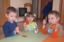 У кролика глазки пуговки, кнопкой нос.