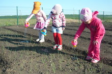 Балаларыбыз бакчадагы түтәлләргә су сибәләр. Үзләренә ел әйләнәсе тукланырга дигән кишер, суган, чөгендергә су сибеп үстерәләр.