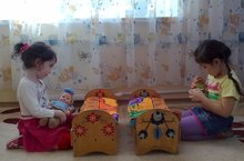 Дети старшей группы, рассмотрев иллюстрации трамвая и обследовав конструкцию игрушечного трамвая, учились конструировать трамвай по образцу, а также видоизменять конструкцию в длину и высоту, обсуждали верные и неверные решения. Сконструировав трамваи, ребята рассаживали в них пассажиров и «катали» их.