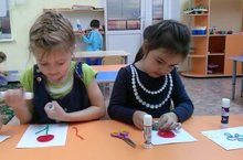 Аппликация из шерстяных ниток. Цель: Развитие мелкой моторики, чувство формы и композиции.