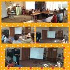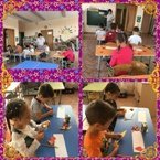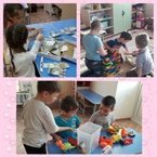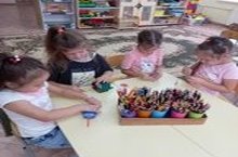 Дети подготовительной группы оказывают шефскую помощь старшей группе. Они поточили цветные карандаши.