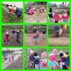 На прогулке дети помогают воспитателю убирать сухие веточки.