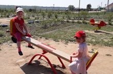 Игры на свежем воздухе в песочнице. / Саф һавада ком өемендә уйнау.
