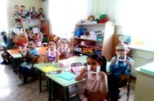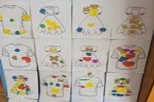 Одежда для мальчиков и девочек, сделана руками детей второй младшей группы./Икенче балалар төркеме белән кызлар һәм малайлар киемен кул белән кисеп ябыштырып эшләү.