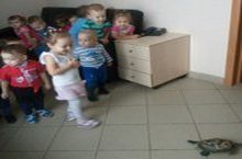 Цель: дать представление о том, как передвигается черепаха; закреплять понятия панцирь, глазки, лапки, голова, хвостик; воспитывать бережное отношение к живой природе.